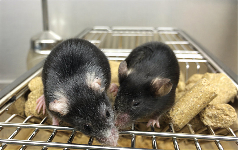 Legend: On the left, a normal 20 month old mouse and on the right, a sibling treated 16 months earlier with a system called ICE (for inducible changes to the epigenome) that was designed to test if epigenetic changes lead to aging in mammals